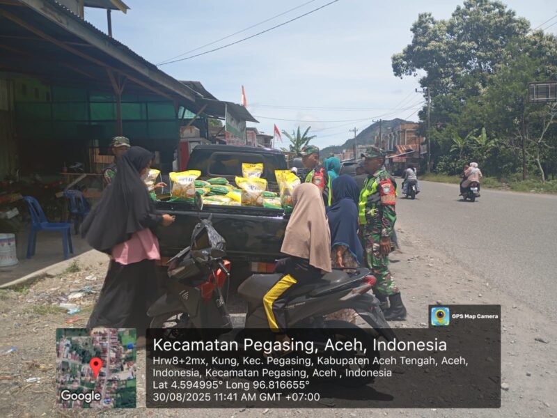 Kodim 0106/Aceh Tengah melalui Koramil 03/Pegasing melaksanakan Gerakan Pangan Murah (GPM) Beras SPHP di Desa Simpang Kelaping, Kecamatan Pegasing, Rabu (10/9/2025).