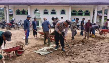 TNI-POLRI Aceh Tengah Bersama Masyarakat Gotong Royong Bersihkan Masjid Pasca Banjir Bandang di Linge
