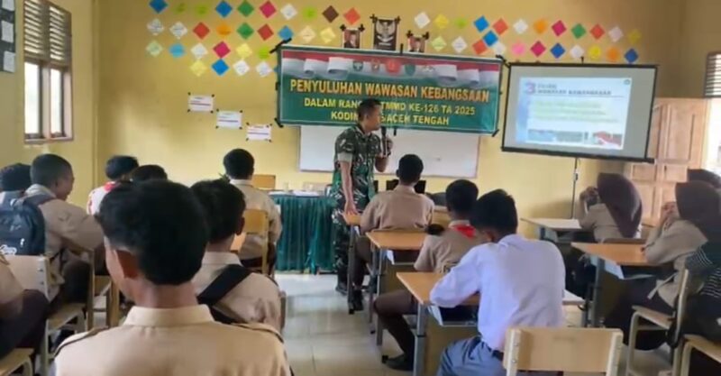 Dalam rangka menumbuhkan semangat cinta tanah air di kalangan pelajar, Satgas TNI Manunggal Membangun Desa (TMMD) ke-126 Kodim 0106/Aceh Tengah melaksanakan kegiatan Penyuluhan Bela Negara dan Wawasan Kebangsaan di SMAN 18 Takengon, Kabupaten Aceh Tengah, Jumat (10/10/2025).