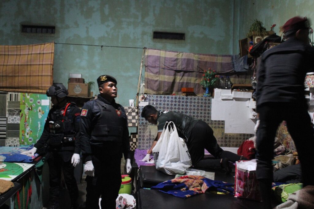 Tim bergerak menyisir setiap kamar hunian, halaman, serta area kamar mandi blok hunian untuk memastikan tidak ada benda atau aktivitas mencurigakan.